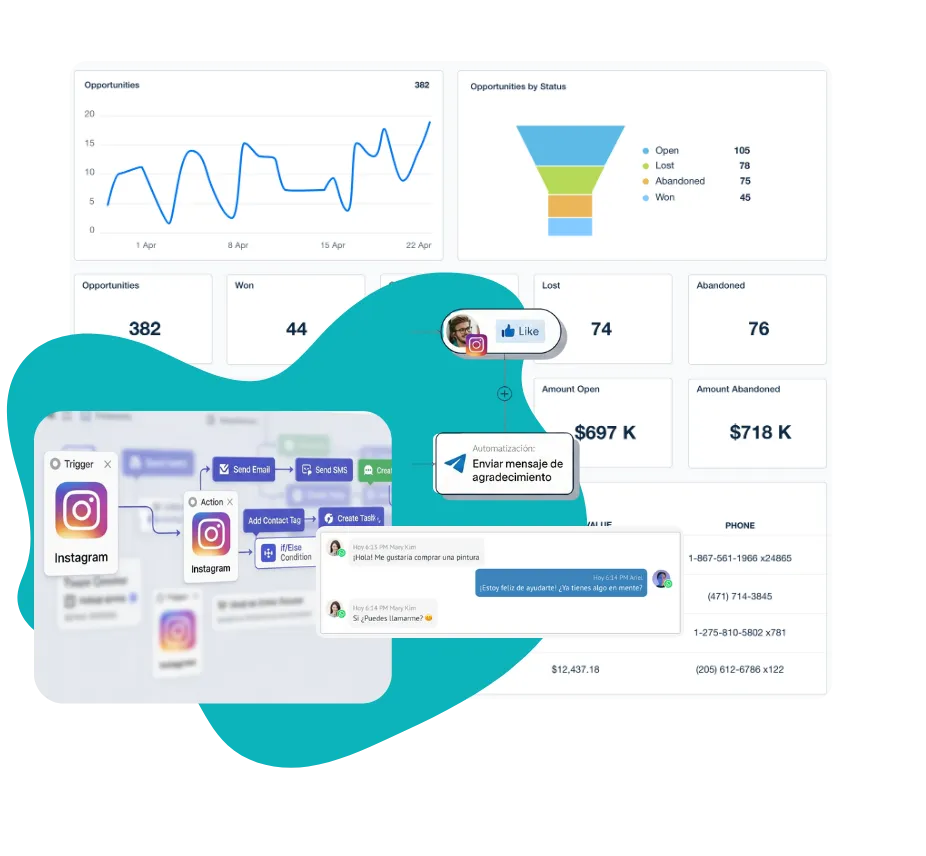 Captá nuevos clientes sin depender de herramientas externas. Diseñá landing pages y flujos automatizados que nutren cada contacto hasta convertirlo en oportunidad real.